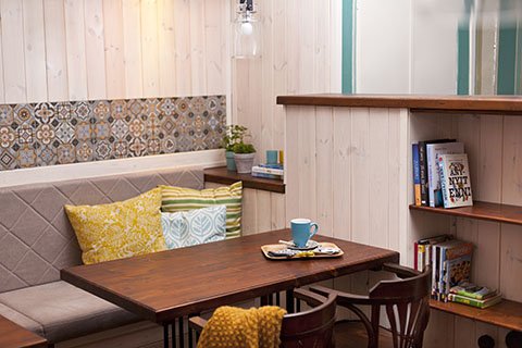A hálószobában a fehér ágyat egy szürke ládával és egy piros székkel kombinálták. A képeket az ágy fölé fúrt polcokon helyezték el, hanyagul a falnak döntve, hogy Ági kedvenc praktikáját idézzem. A natúr színű tömörfa étkezőasztalt piros design székek veszik körül, a megvilágításról IKEA függesztékek gondoskodnak. A szürkére és fehérre hangolt konyha megjelenésébe tarka mozaik csempék visznek egy kis játékosságot. A hajón hatalmas ablakok kötik össze a kintet a benttel, a lakókat szinte beemelik a természetbe, itt még az is megtörténhet, hogy a reggeli kávézás során beköszön az ablakon egy hattyú vagy egy kacsa.