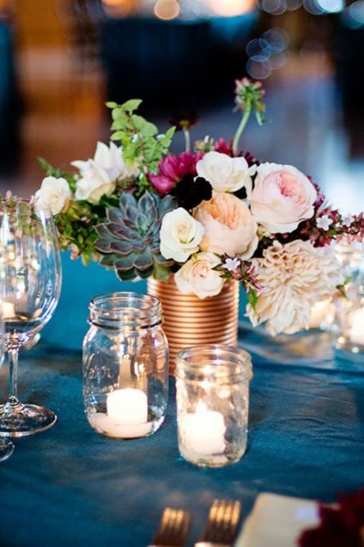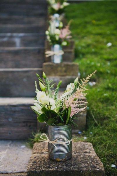 Esküvőszervezéskor vagy bármilyen nagy családi, baráti összejövetel szervezésekor sokat spórolhatunk az összköltségen, ha a dekorációt, vagy annak legalább egy részét saját magunk készítjük. Célszerű ilyenkor előre számba venni, hogy milyen meglévő alapanyagokat tudunk majd esetlegesen újra felhasználni, hogy a gyűjtögetést időben megkezdhessük. A mindennapi háztartásban használt termékek csomagolása, például befőttes üveg, boros dugó, konzervdoboz, WC papír guriga jó szolgálatot tehetnek egy kis átalakítással. A befőttes, tejes, sörös üveg, villanykörte mind-mind kedves vázákká válhatnak, ha egy kis csipkével, szép papírral, vagy masnival megbolondítjuk őket. Spárgával vagy drótkampó segítségével felakasztva (akár szabad téren is) és virággal megtöltve ízléses kiegészítői lehetnek az eseménynek.