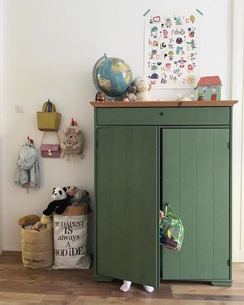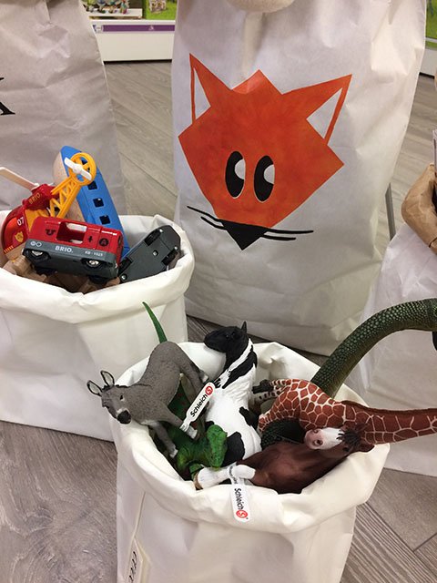 Az a helyzet, hogy sok a cucc. A szobát két gyerek lakja: egy fiú, egy lány, egy iskolás, egy óvodás, na az ő játékaikat kellene valahogy rendszerezni. Nagyon szeretjük a KreatívJáték Áruház termékeit, sok játékunk van onnan, szuper kellékei az önfeledt, belemerülős időtöltésnek, ráadásként még a külső is abszolút rendben van. Az biztos, hogy a rendszerezéshez szükség lesz egy nagy polcra, hogy ne a földön heverjenek a társasok, kirakók és különböző kreatív eszközök. De a gyerekbirodalmat elárasztó nagyszemű Yoohoo plüssfigurák, a Schleich gumiállatkák és dínók, valamint a matchboxok tárolásához kiegészítésképpen nálunk is jól jönne egy-két Cucc papírzsák, mondjuk a rókás. A legó feliratúnak pedig különösen örülne a nagyobbik, és én is, ha ezzel egy csapásra megszűnne a legóba lépés fájdalmas problémája. És igen, a Brio favonat tartozékait is bezsákolnám, mert pont olyan bosszantó rálépni, mint a legóra.