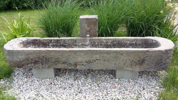A Miakőbe betérve a kertben régi itatóból készült kerti csap fogadott minket. Jól mutatott a köré ültetett növényekkel.