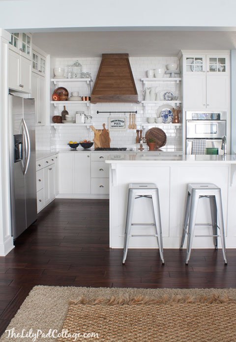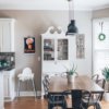 A házba belépve egy csodás régi pad fogad, előtte piros gumicsizmában zöld növények díszelegnek, a falat vintázs evezőlapátok segítségével mozgatják meg. Az otthon központi eleme a konyha-étkező-nappali hármasa, ahol sokszor összegyűlik a család, és akkor is együtt tudnak lenni, ha történetesen mindannyian más tevékenységet végeznek. A hófehér, mennyezetig futó konyhabútort szabad polcokkal egészítették ki, amihez a fehér metró csempe tökéletes választásnak bizonyult. Nagyon látványos a masszív faborítással ellátott páraelszívó.