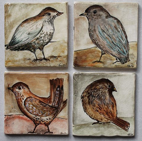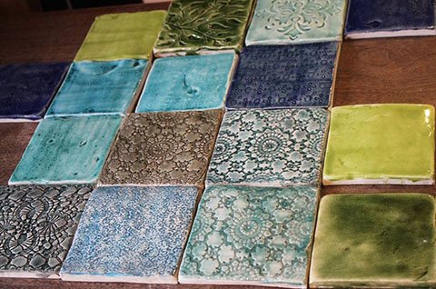 Standard és strukturált felületű csempék, kézzel festett burkolatok, illetve mozaik alkotások is megtalálhatók a kínálatban. A mozaik berakások alapját saját csempék képzik, a felrakást a kívánt eredmény elérésének érdekében is ő a végzi a helyszínen. Nemcsak egyedi burkolatokat tervez és éget ki kemencéjében, hanem csempeképeket, különleges, Provance-t idéző romantikus hangulatú edényalátéteket is fest.