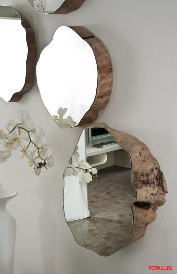 Ha más tárgyakat hasznosítanánk újra és tükörfelülettel kombinálnánk, akkor is bőven van miből ötletet merítenünk. Régi tortaforma, uszadékfa, biciklikerék, régi teniszütő lehet az alapja egy-egy menő falraakasztható tükörnek.