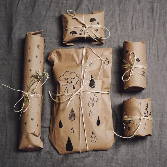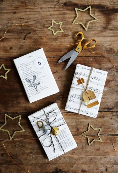 A lenti válogatás új ötletekre hívott meg, rádöbbentem, hogy mennyire jópofa dolog feldobni a natúr csomagolást egy-egy fenyőággal és szép zsineggel, újságból vagy régi könyvből kivágott formákkal. Fényképeket, kotta részleteket, maradék csipkét és maradék anyagokat is használhatunk. Ha merészebb dolgokkal kísérleteznénk, akár néhány nem használt meleg pulcsi, vagy sál is tökéletes alapanyag egy újrahasznosított csomagolás elkészítéséhez. Az biztos, hogy ízléses és szívből jövő, mindemellett az alkotás öröme is a miénk lesz, ráadásul egy picit a környezetet is megajándékozzuk vele.