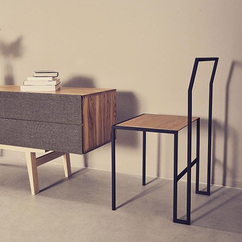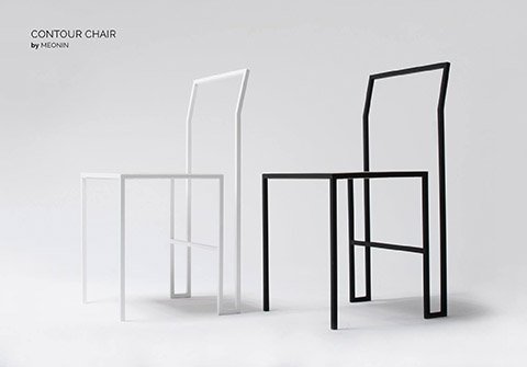 A Meonin Furniture-rel a Mono Art & Design üzletben találkoztam először, lenyűgözött a Contour szék szépsége. A szék vázát és háttámláját egy folytonos vonal adja, amely vékony rozsdamentes acél megformázásával készült, egyedül az ülőfelület van kitöltve egy tölgyfa lappal. A szék a karakteres alapanyagok használata ellenére tud kecses és légies lenni, szelíden beleolvadva, szinte együtt lélegzik a térrel.