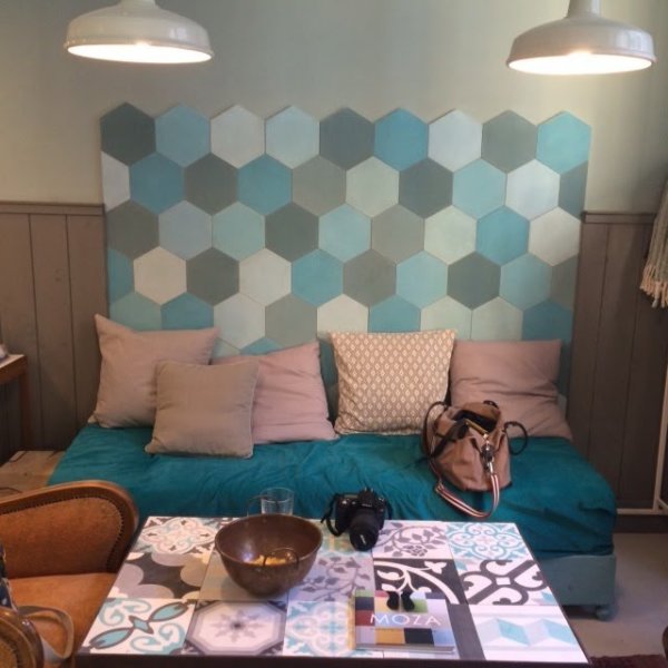 Összesen négy lapot készítettünk, ehhez először laponként összeválogattuk a megfelelő színeket. Nem volt könnyű, 60 színárnyalatból gazdálkodhattunk! A színmintákat földre helyezve pakolgattuk egymáshoz a különböző árnyalatokat, míg megtaláltuk a nekünk leginkább tetsző variációkat. Ezután Kristóf, az egyik tulajdonos vezetésével egy rövid túra következett a műhelyben, aki készségesen válaszolt minden felmerülő kérdésünkre.