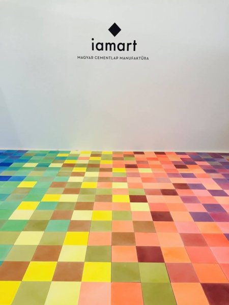 Majd a bemutatóteremben számítógépen megterveztük a cementlapokat, a mintákat feltöltöttük a korábban meghatározott színekkel. A tervezőprogram egyébként megtalálható a Iamart honlapján is, így mindenki otthon a fotelből is megálmodhatja saját cementlapját, de megrendelés előtt érdemes a színeket a bemutatóteremben is megtekinteni, mert a monitor csalóka lehet.