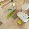 Miután a megálmodott alap bútorokat beszerezték, az egészet megfűszerezték néhány karakteres kiegészítővel: fémtáblával, betűkkel, bőröndből készített lerakóasztallal, és hulladékfából lett alátéttel.