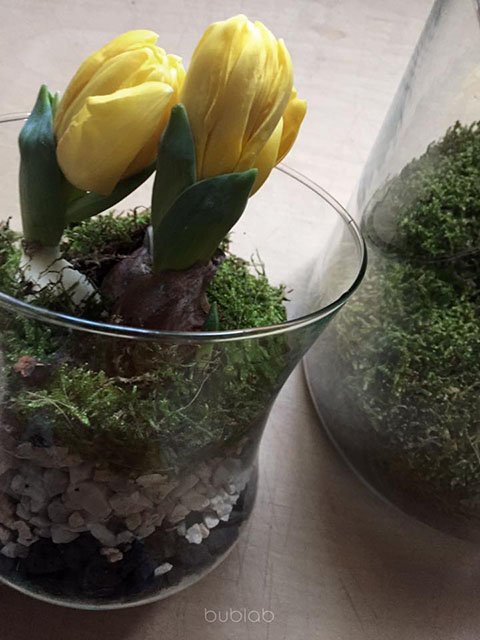 Nemrégiben fedeztem fel a bublab csodálatos növényterráriumait, amelyek szemet gyönyörködtető, stílusos díszei lehetnek bármely enteriőrnek. Művészien megkomponált növénycsodák egy üvegben, amely olyan védelmezően öleli körbe a pozsgásokat, zuzmókat és mohákat akár a Kisherceg rózsáját az üvegbura a B-612-es bolygón. A különböző izgalmas kompozíciók nem igényelnek különösebb gondozást, kezdő kertészek is könnyedén életben tarthatják a növényeket. A terráriumok tartalma igazodik az évszakok slágernövényeihez, tulipán és egyéb tavaszi virágok lelnek itt új otthonra. A bublab csodákat megtalálhatjátok piacokon vagy vásárokon, de online is fel tudjátok venni a tervezővel a kapcsolatot.